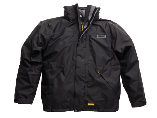 The DEWALT DEWDWCSJTXL DWC1001 black site jacket is sized extra large.