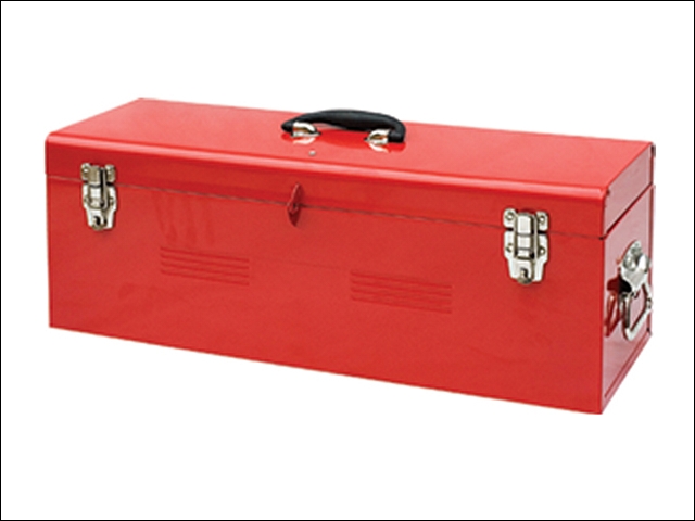 The Faithfull larger capacity toolbox manufactured from heavy-gauge sheet steel with a durable powder coated finish.