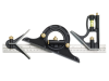 A versatile measuring instrument with matt black die cast stock, brass locking screw and stainless steel blade with markings clearly etched on both sides, fitted with separate scriber.Also fitted with a steel blade, centre head and protractor set.