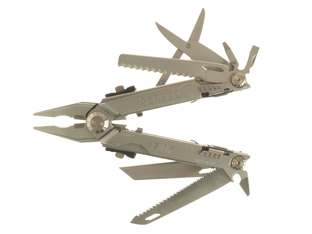 The Gerber Flik Multitool delivers industrial strength and professional grade functionality within a compact design meant for everyday use. It combines one-handed deployment of pliers with outboard tools and a saw. The patented Saf.T.Plus locking system assures tool components stay in place while in use. The handles are made from stainless steel, offering durability and resistance to corrosion.