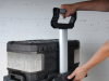 This Stanley Galvanised Metal Rolling Workshop has a 20in detachable metal plastic top toolbox, that includes a portable tray for small parts and hand tools. It separates easily by pressing the front push-button. It has a telescopic handle and large wheels that allow for easy manoeuvrability.