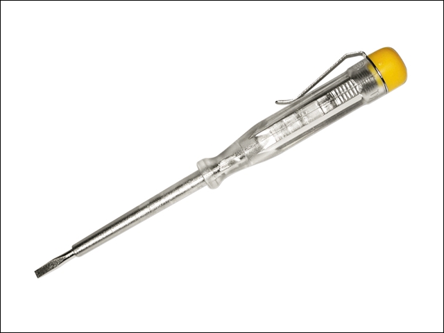 Fully insulated circuit tester conforming to VDE, GS and GE standards. A neon indicator lamp located inside the handle illuminates when the live part of an electrical circuit is detected. Suitable for use on circuits where the current does not exceed 250 volts.